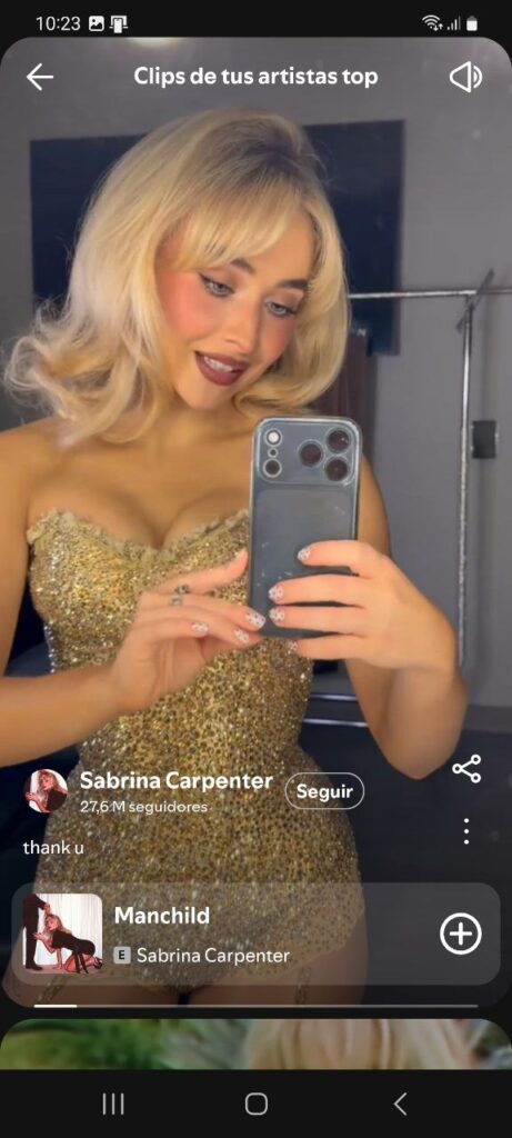 Por último, el carrusel regala a los usuarios vídeos de sus artistas y podcasters favoritos en los que agradecen la fidelidad de su audiencia, estrechando la relación entre las partes y alimentando una forma de relación parasocial (de falsa familiaridad) que resulta entrañable.